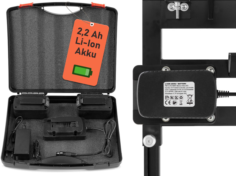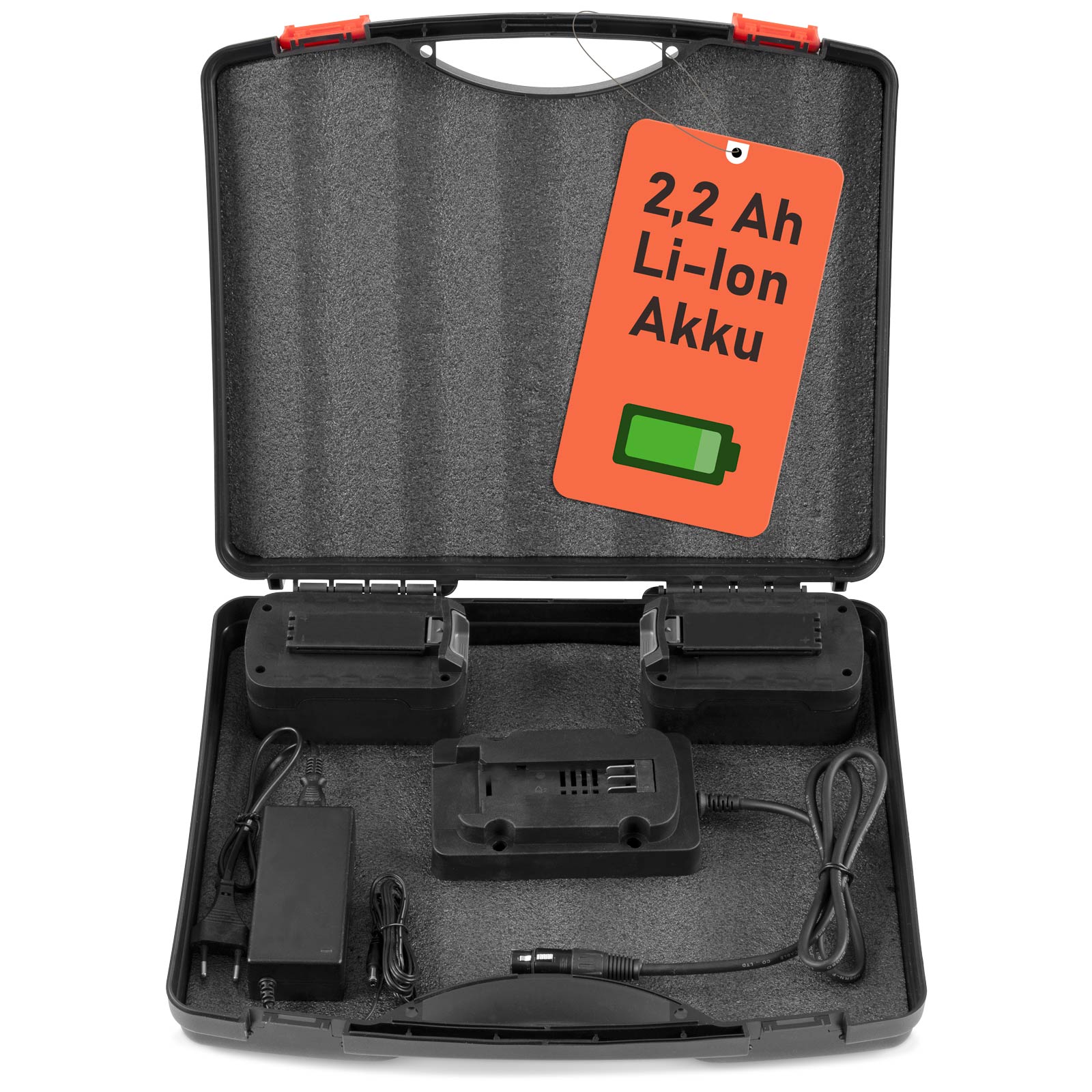 • 2x Li-Ion Akku (37 V / 2.2 Ah) + Ladegerät im Koffer
