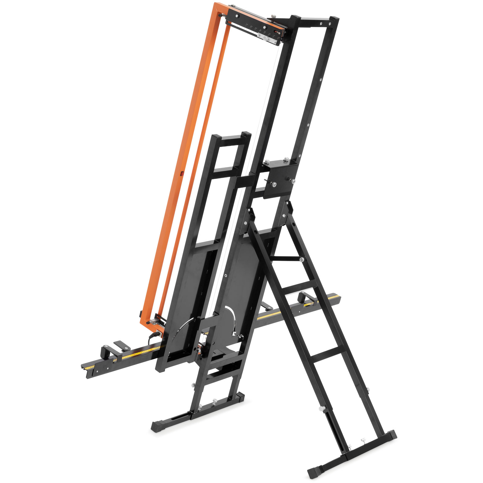 Die Gerüstaufhängung ermöglicht eine schnelle Befestigung des Hartschaumschneiders am Gerüst: Aufhängen, Schraube zudrehen, fertig.
