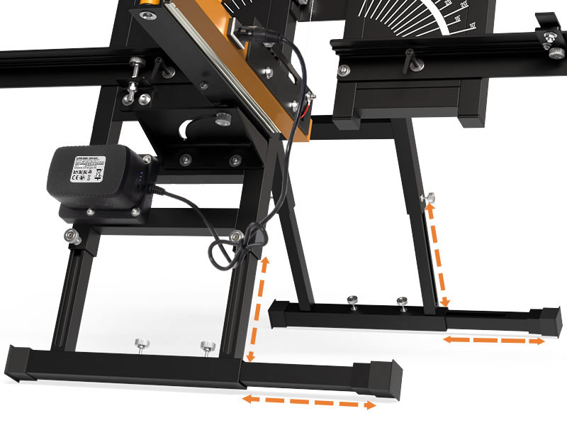 Der einklappbare Standfuß des Alucutter Profi überzeugt durch seine stabile Konstruktion und die individuellen Einstellmöglichkeiten in Breite und Höhe.